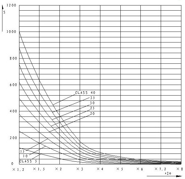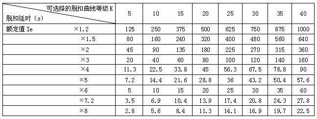3.3 過載保護 過載保護是現(xiàn)場是用中最重要的保護之一,用到電機的場所幾乎都開啟此類保護。ARD3采用熱模型保護原理,模擬電機實際發(fā)熱情況進行過載保護。ARD3共有8條過載保護曲線供客戶選用,其中曲線5、10、30分別相當(dāng)于熱繼電器的10A、10、30脫扣級線。過載特征曲線圖(K曲線圖)如圖2所示,過載保護對照表如表2所示。