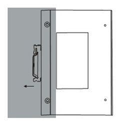 墻式安裝: ①使用配送的金屬固定條按上圖扭緊螺絲。 ②再裝上鎖好金屬條的機器懸掛于墻或機柜上。