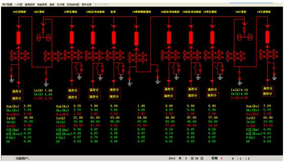 系統(tǒng)提供簡單、易用、良好的用戶使用界面。采用全中文界面,配電系統(tǒng)電氣一次主接線圖,顯示設(shè)備狀態(tài)及實時運行參數(shù);畫面實時動態(tài)刷新;模擬量顯示;開關(guān)量顯示;報警記錄顯示等。