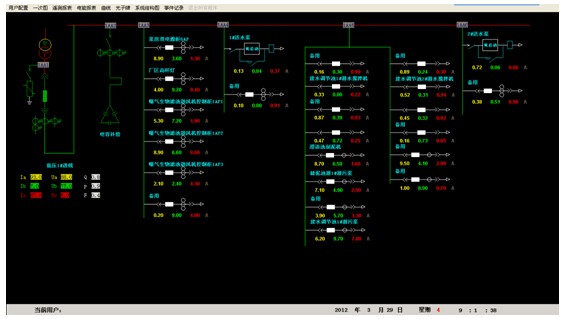 按照晉城污水處理廠的實際需求和智能元器件的功能,完成系統(tǒng)的設(shè)計,主要功能為:一次主接線圖界面顯示;電參量遙測及電參量越限報警;事件記錄,系統(tǒng)運行異常監(jiān)測;故障報警及操作記錄;電能報表查詢與打印;歷史曲線,用戶權(quán)限管理、高壓遙控等主要功能。