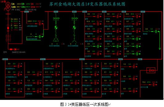 本電能管理系統主要由地下室一個變電所進行變配電管理,整個地下變電所提供金雞湖大酒店全部酒店客房、娛樂休閑、辦公及后勤用電。高壓電纜進線由外邊開閉所引來,并且監控值班室設置在地下一層監控室,且緊靠變電所。因此,為實現對整個金雞湖大酒店電力系統的實時監測及對各區用電的電能管理,在值班室設立了監控中心,基于Acrel-3000的電能管理系統后臺,實現對整個配電系統的實時監測與電能管理。