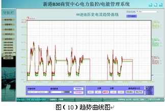 負荷趨勢曲線界面中可直觀的查看回路的負荷運行情況。查看實時和歷史趨勢曲線,點擊畫面相應按鈕或菜單項可以完成相應功能的切換;幫助用戶進線趨勢分析和故障追憶,具備曲線打印功能。為分析整個系統的運行狀況提供了直觀而方便的軟件支持。見圖(10)。