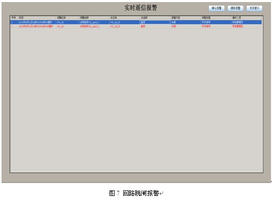 主要用于查看歷史報警信息;幫助用戶進行事故查詢與追憶;支持歷史查詢,打印等功能。實時報警信息會即時彈出,提醒用戶所進行的操作。并對所有操作具有自動事件記錄功能。如圖7所示。