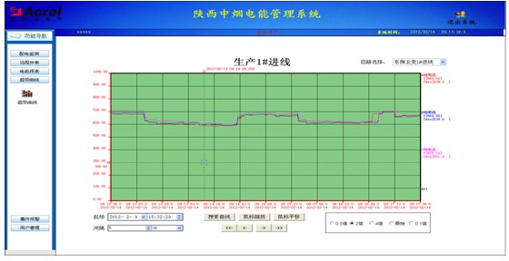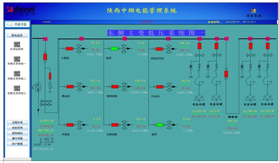 上海安科瑞電氣股份有限公司系統集成部對陜西中煙工業有限責任公司澄城卷煙廠要解決的問題進行詳細分析,弄清楚項目發起人及項目其他干系人的要求¸待開發的信息系統要解決客戶和用戶的業務問題以及問題的來龍去脈后,經雙方溝知電力監控系統應實現各配電室各饋線回路電壓、電流、功率、功率因數及頻率等監測信息實時刷新,配電室整體一次圖形式直觀動態顯示;完成對各配電回路的電壓、電流或功率實時和歷史趨勢曲線的繪制,便于分析該回路配電運行工況,調配三相配電平衡和削峰填谷;完成對各回路的電能集抄功能,并自動生成符合客戶管理需求的用電報表,所有報表或圖表支持查詢打印功能。