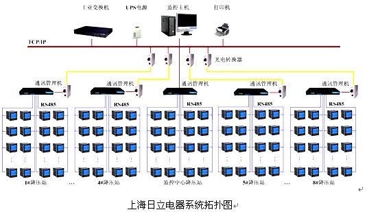 上圖為安科瑞電氣股份有限公司為上海日立電器該著系統設計的Acrel-2000變配電監控系統拓撲圖,現場中的IO設備的通訊線纜均采用RVSP 2*1.5屏蔽雙絞線。