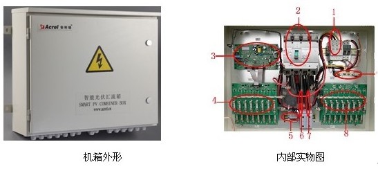 2.2.1.1 產品特點 ◆符合《CGC/GF002:2010》光伏方陣匯流箱技術規范 ◆防水等級為IP65,滿足室內外安裝要求 ◆測量元件采用霍爾傳感器,隔離測量最大16路輸入 ◆光伏專用熔斷器,耐壓DC1kV,熔斷電流可選擇 ◆可選電壓測量功能,最高測量電壓DC1kV ◆提供外部傳感器輸入接口,可測量輻照、溫度、風速等 ◆具有RS485通訊接口,使用Modbus-RTU通訊協議 ◆多種供電方式(DC24V、AC/DC220V、DC880V)可選擇,適用于家用屋頂太陽能或大型光伏電站應用 ◆可根據客戶需求配用國外ABB等廠家的光伏專用直流斷路器,光伏專用直流熔斷器、防雷保護器等等。