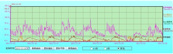 4.3 曲線趨勢:實現(xiàn)了用戶所要求的通過對各配電回路的電壓、電流或功率繪制趨勢曲線,分析該回路配電運行工況