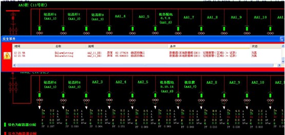 4.2 事件報警:越限報警內(nèi)容,報警數(shù)值,值班人員以及動作類型和時間,同時對各監(jiān)測點的通訊狀態(tài)或異常用電進(jìn)行報警,便于管理人員實時掌握并分析配電運行情況。