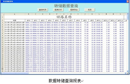為了滿足該企業ERP系統對電力參數作進一步的加工分析,Acrel-2000型電力監控系統還提供了數據轉存功能,即將Acrel-2000電力監控系統數據庫中的數據轉存到相鄰主機SQL 2008數據庫中,以便用戶對這個企業的用電數據進行操作,而且在本機上可以查詢出任何時刻轉出的數據,報表窗口如圖示: