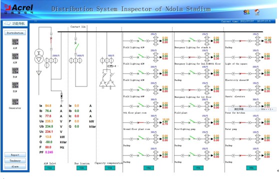 援贊比亞恩多拉體育場電力監(jiān)控系統(tǒng)項目從初步方案到項目執(zhí)行經歷了大約9個月的時間,其間根據(jù)設計院要求和現(xiàn)場人員建議修改過數(shù)次實行方案,最后的項目實施是比較順利的。經過2周的調試和2周的試運行,中方留守人員以及監(jiān)理工程師也認可了本系統(tǒng)的功能。