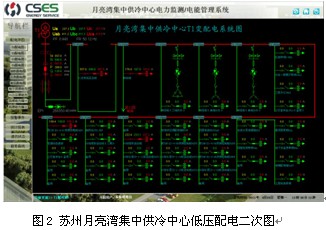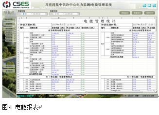 蘇州月亮灣集中供冷中心低壓配電二次圖見圖2,功能有電量遙測主要監測運行設備的電參量,其中包括:線三相電壓,電流,功率,功率因數,電能,頻率等電參量及配出回路的三相電流;遙信功能實現顯示現場設備的運行狀態,主要包括:開關的分、合閘運行狀態和通訊故障報警;遠程抄表功能,主要完成對各主要回路的遠程集抄功能,可選擇時間段進行查詢見圖3;