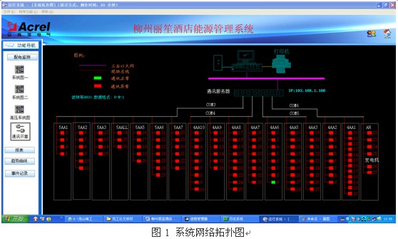 本文以Acrel-3000智能電力監控系統的三層網絡拓撲結構為核心,分析了網絡拓撲結構的選型,以及Acrel-3000電力監控系統的功能和性能指標。在電力監控系統中,配置網絡電力儀表具有實施簡明、投資少等顯著優點,可以方便和實時地監控配電系統的運行狀態,對現場的用電設備進行統一管理,免去工作人員到現場記錄的繁瑣工作,系統對各種用電設備的歷史運行數據和狀態進行管理分析,便于維護人員明確設備狀況,制定詳細的設備維護計劃,減少工作人員,提高效率。同時,根據建立的電能計量體系,可以了解、分析建筑總體能耗,提出降耗計劃,采取節能降耗措施,逐步提高用電效率。