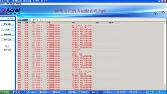 系統對所有用戶操作、開關變位、參量越限及其它用戶實際需求的事件均具有詳細的記錄功能,包括事件發生的時間位置,當前值班人員事件是否確認等信息,對開關變位、參量越限等信息還具有聲音報警功能,同時自動對運行設備發送控制指令或提示值班人員迅速排除故障。