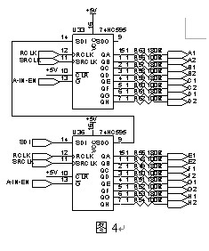 電流輸入模塊上還具有輸入通道狀態(tài)指示,使用雙色LED燈指示電池串列的斷線或正常工作狀態(tài),雙色LED驅(qū)動使用串入并出移位寄存器74HC595兩顆級聯(lián)使用,其中U33驅(qū)動綠色LED管芯,U36驅(qū)動紅色管芯。(圖4)