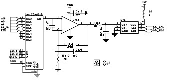 外部模擬量輸入類型有DC 0~20mA、DC 0~10V、PT100、0~100mV、DC 0~1000V,這些外部信號都先經(jīng)過外部分壓或分流處理調(diào)理成同一范圍的電壓信號,然后輸入到一個八選一的模擬開關(guān)U44,U44的輸出經(jīng)過運放U45放大到A/D轉(zhuǎn)換器U46可接受的電壓范圍,運放U45使用5V單電源軌到軌運放,A/D轉(zhuǎn)換器使用ADS1110。電路工作時由程序控制將外部模擬信號逐路切換到輸出進行A/D轉(zhuǎn)換,再由CPU讀取數(shù)據(jù)(圖8)。