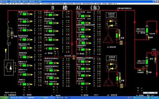 系統提供簡單、易用、良好的用戶使用界面。采用全中文界面,CAD圖形顯示低壓配電系統電氣一次主接線圖,顯示配電系統設備狀態及相應實時運行參數;畫面實時動態刷新;模擬量顯示等。