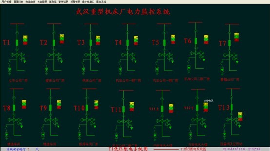 過去在各配電室的監(jiān)控系統(tǒng)都是“各自為政”,各類通訊協(xié)議的系統(tǒng)無法實(shí)現(xiàn)數(shù)據(jù)共享。這不符合電氣值班人員精簡(jiǎn)和系統(tǒng)集中監(jiān)控的發(fā)展。武漢重型機(jī)床集團(tuán)建立了各配電室之間的光纖網(wǎng)絡(luò)連接,集中于一個(gè)監(jiān)控室。通過集中監(jiān)控微機(jī)的軟件,讀取各配電室儀表的信息量,實(shí)現(xiàn)監(jiān)控機(jī)對(duì)全廠電力系統(tǒng)的集中監(jiān)控。可以了解到全廠電力系統(tǒng)狀況,這對(duì)電力系統(tǒng)事故狀態(tài)下的調(diào)度指揮也很有益處。 經(jīng)過科學(xué)的設(shè)計(jì)、安裝和調(diào)試,整套系統(tǒng)達(dá)到了預(yù)期的功能。通過監(jiān)控系統(tǒng)實(shí)現(xiàn)了控制各種儀表;實(shí)現(xiàn)對(duì)配電室數(shù)據(jù)采集、監(jiān)控和管理;同時(shí)具備報(bào)警處理等功能。友好的界面操作系統(tǒng)和簡(jiǎn)易的操作,使系統(tǒng)更具有人性化。而且,本系統(tǒng)將硬件設(shè)備組裝在自行設(shè)計(jì)的通用開關(guān)柜中,實(shí)現(xiàn)集中管理,同時(shí)也便于系統(tǒng)的維護(hù)與更換,提高產(chǎn)品的模塊化、標(biāo)準(zhǔn)化、層次化,便于系統(tǒng)的擴(kuò)展。采用組態(tài)軟件,減少了電力設(shè)備狀態(tài)監(jiān)視對(duì)人力依賴,降低了人力的成本,提高了經(jīng)濟(jì)效益。為電力系統(tǒng)的生產(chǎn)運(yùn)行和管理提供了科學(xué)、準(zhǔn)確的依據(jù)。