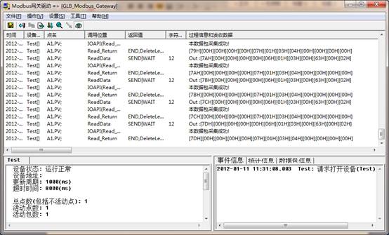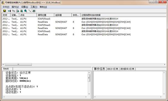 現(xiàn)在可以看到,驅(qū)動(dòng)調(diào)度程序顯示通訊信息;如果沒有顯示,重啟工程或點(diǎn)擊菜單,操作->重置所有設(shè)備。驅(qū)動(dòng)調(diào)度程序顯示通訊信息,如下圖所示: