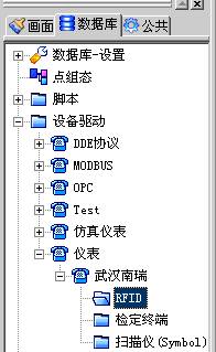 隨后運(yùn)行紫金橋開發(fā)系統(tǒng),展開“數(shù)據(jù)庫”選項(xiàng)卡,設(shè)備驅(qū)動所在目錄如“RFID”,如下圖所示: