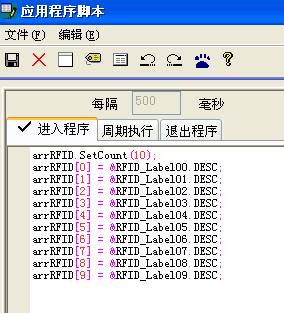 (2)數(shù)組初始化:在應(yīng)用腳本的“進(jìn)入程序”中對該數(shù)組初始化并指向需要讀取的條碼