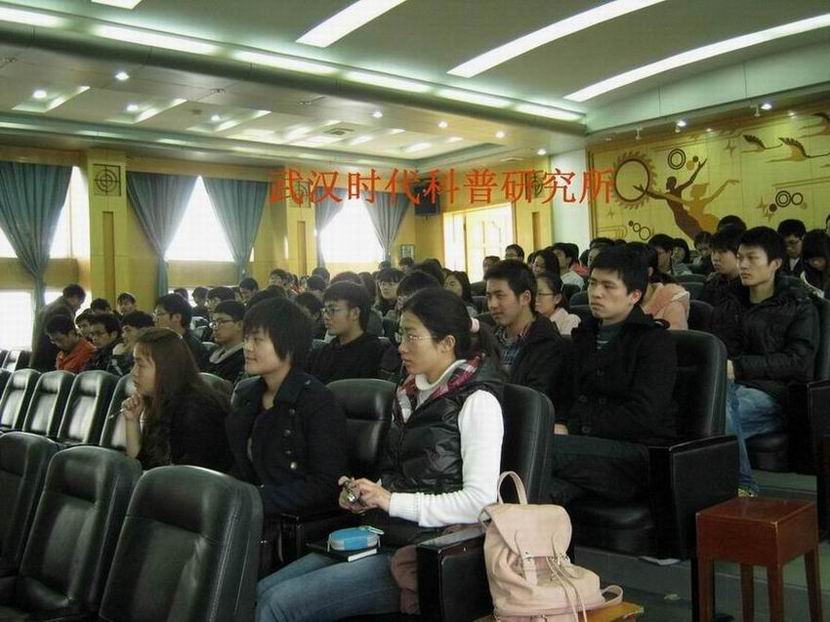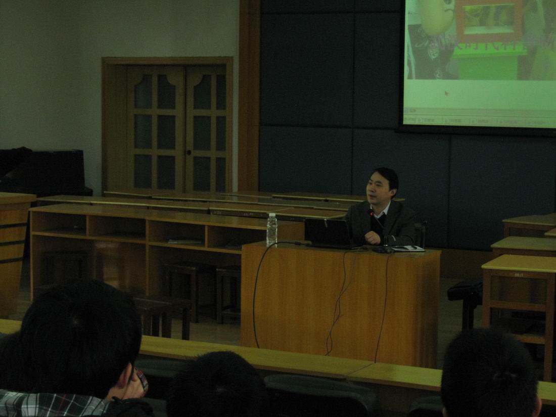 黃致新教授在階梯教室里作 “開設基礎物理實驗” 報告