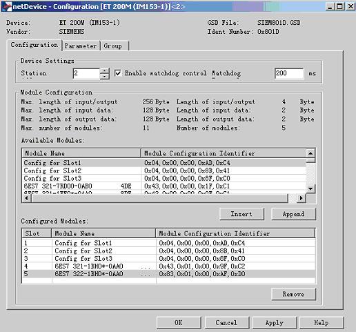 下圖為ET200M從站的參數配置畫面: