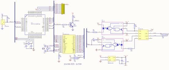 主機控制子系統主要實現處理鍵盤指令、向LED反饋指示子系統發送數據、與各分燈箱通信和系統自檢四大功能。當按鍵動作有效時,按鍵信號通過74HC373進行鎖存,主機CPU讀此地址內容即判斷出何鍵被按下,并進行相應操作;當數據送LED顯示時,主機CPU向二片CD4067送6位數據,其中4位作為地址線共用A、B、C、D,一根使能線送U1(CD4067),另一根使能線送U2(CD4067),從而級連二片CD4067。當接收到操作員通過按鍵發出的指令,經主機CPU處理后,通過CAN總線向各分燈箱發送數據包,并等待分燈箱發送的執行情況的數據包;當選擇自檢功能時,由主機CPU逐次向各分燈箱發遠程幀,通過各分燈箱是否響應來判斷它們是否正常。 鍵盤子系統主要實現通過不同的按鍵,向主機控制子系統發出不同的指令。觸摸按鍵一端接地,一端接主機控制板上的74HC373,為保證可靠工作,在74HC373端接10K的上拉電阻,初步定為6個按鍵,強、中、弱、速度、復位、自檢。 LED反饋指示子系統主要實現同步顯示各個分燈箱的工作狀態以及自檢時顯示故障位置,LED經開關管8050與鍵盤上的CD4067相連。 |