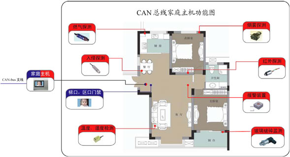 圖 1 基于CAN-bus總線的家庭主機主要功能圖 |