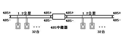 利用485中繼器延長(zhǎng)網(wǎng)絡(luò)距離圖示: