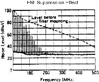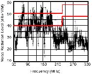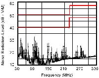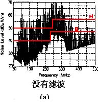 圖3(a)沒有采取電纜濾波的輻射頻譜 圖3(b)采取了電纜濾波的輻射頻譜