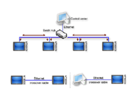 以太網絡連接的方式有兩種;可以使用RJ45平行網絡線(straight through cable),搭配集線器(hub)使用;另一種是使用RJ45跳接網絡線(crossover cable),不需使用集線器,但只限使用在一對一聯機的情況下(HMI對HMI,或PC對HMI)。