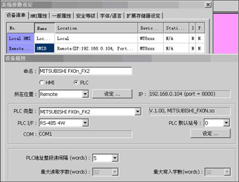 使用EB8000,并在[系統參數設定]里的[設備清單],增加一臺PLC的定義,并正確設定通訊參數。
