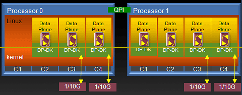 Run-to-Completion(RTC,運行到完成)和Core Affinity 在執行應用之前,Intel® DPDK會進行初始化,分配所有的低級資源,如內存空間,PCI設備,定時器,控制臺,這些資源將被保留且僅用于那些基于Intel® DPDK的應用。初始化完成之后,每一個核(或線程,當BIOS設置中啟用了Intel®超線程技術時)將被啟用來負責每一個執行單元,并根據實際應用的需求,運行相同的或不同的工作負載。
