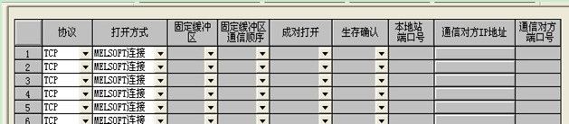 1)將PLC中 參數(shù)設(shè)置 的以太網(wǎng)參數(shù)中,“打開設(shè)置” 的方式設(shè)置成為:“melsoft” 的鏈接方式。 16個(gè)都設(shè)置成melsoft。