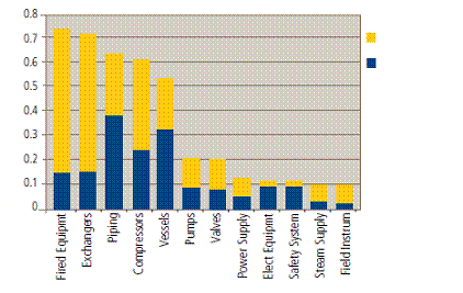 具有 30 年以上經驗的煉油行業專家 Doug White 指出,“我們對全球各種煉油廠進行了大量研究,對收集自多種行業來源進行的數據分析表明,在典型煉油廠中,約 25% 的非計劃大修是由設備故障引起的。我們在圖 2 中提供的整合數據顯示了造成意外停車、運行性能和設備效率下降的根本原因之間的關系。根據我們的研究,只有7種設備有可能造成這種損失,即:閥門、泵、容器、壓縮機、管道、換熱器和消防設備。”