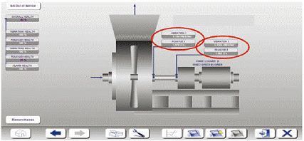 鍋爐為分離研究項目裝置提供蒸汽,如果沒有風機就無法進行運行,鍋爐就是“糟糕的演員”之一,它對于正常要求而言規格過大,因此需要每隔 20 分鐘左右循環開啟和關閉,如此循環往復給于風機很大壓力,風機必須啟動與停止以提供助燃空氣。曾經有一次災難性的葉輪故障導致風機撕裂,然后與鍋爐脫離,在得不到那必要的助燃空氣的情況下,鍋爐跳車,同時通向分離研究項目的蒸汽供應中斷。當時沒有更換風機,因為老鍋爐已有部分缺損,最后是重建了風機,再焊接至鍋爐,但焊接修復處的焊疤清晰可見。最后一次維修之后,風機電機上安裝了無線振動傳感器,這樣工廠人員就可以對風機的健康狀況進行監控。在這個案例中安裝了兩臺加速計,分別整體振動和峰值振動測量。峰值振動從高達 50,000 次/秒的快速取樣速率中提取出來,用于測量金屬撞擊金屬時出現的沖擊峰值。操作人員可以據此了解風機的健康狀況,進行必要的修復工作,避免出現同類故障。圖 5是用于監控鍋爐風機的操作畫面,它可以顯示風機的整體健康狀況以及來自無線振動傳感器的測量結果。