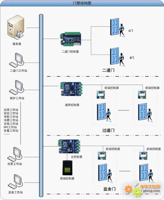 a 、采用了主控+分控的兩級結構,系統結構清晰、維護方便,能最大限度的防止犯人蓄意破壞門禁系統及系統附件,同時系統實時提供每扇門的狀態,對門鎖的開關狀態進行遠程監控,大大提高系統的安全性。
