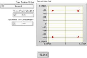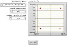 256-QAM信號圖(已放大為僅顯示4個符號)顯示了正交偏移補償的效果。