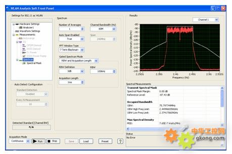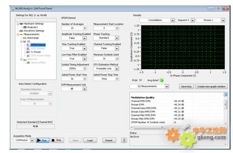 NI WLAN分析工具包 提供的軟面板可通過NI PXIe-5644R使用快速生成或采集功能。該分析軟面板可用于調制或頻譜測量。通過軟面板和多達4臺NI PXIe-5644R也可獲得4x4 MIMO配置。