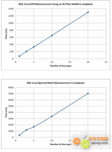 圖15顯示了在802.11ac中使用不同平均數執行EVM和頻譜屏蔽測試所需的測試時間。