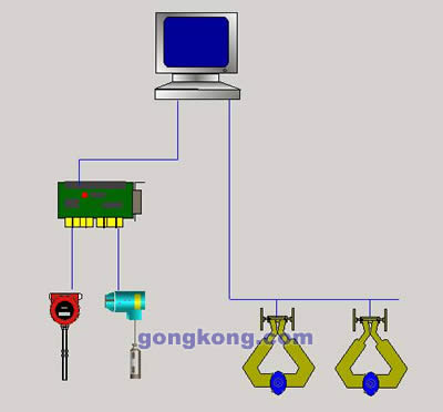 系統主要實現一下功能: 1、數據的輸入輸出處理,紫金橋軟件下面連接了一臺西門子PLC和兩塊羅斯蒙特質量流量計,分別用來采集現場的溫度、閥門開關信息和瞬時流量、密度和累計總量等。PLC也連接了相應的數字量輸出和模擬輸出分別用于控制現場的泵開關閥和兩個調節閥。采集到的數據進入DB之后存儲為歷史數據,以備用戶以后察看曲線,并根據預設條件判斷是否有報警產生。 2、調和人機交互操作界面,根據操作工人設定的添加量按照相應的先后順序依次打開泵調節閥開關閥,進行打料過程,在此過程中自動實時計算添加量,當達到設定量時關閉相應設備,完成原料的添加,進入攪拌環節。