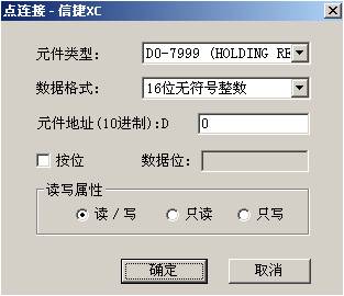數據類型:從元件中讀取的數據的類型,包括:16位無符號整數、16位有符號整數、32位有符號整數、32位有符號整、32位浮點數、字符型、8位無符號整數、8位有符號整數。