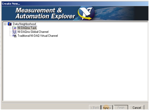 在MAX中建立采集任務(wù),如圖9所示,在“Data Neighborhood(數(shù)據(jù)鄰居)”選項(xiàng)中選擇“NI-DAQmx Task(NI-DAQmx任務(wù))”。