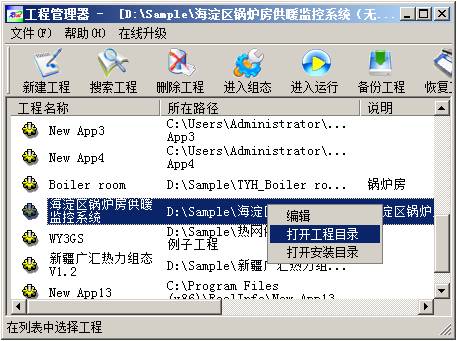 a. 進入工程管理器,選擇要拷貝的工程,單鼠標右鍵,在彈出菜單中選擇“打開工程目錄”,如下所示: