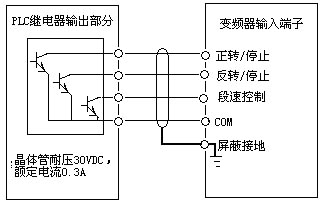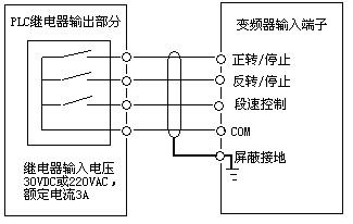 圖1 A 繼電器型PLC輸出與變頻器連接的運行方式