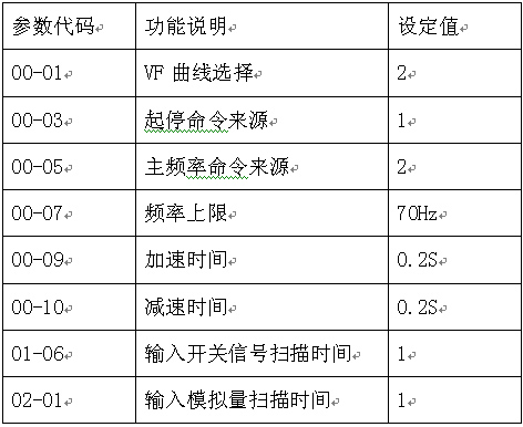 表1 S310變頻器參數表 三.結束語 臺安S310變頻器能滿足包裝機的要求,是因為其具有以下優點:⑴ 具有較高的穩態精度和快速動態響應性能;⑵ 體積小型化,運行低噪音;⑶ 功能豐富、高性價比。 通過調試,該系統可滿足用戶在多種情況下的運行要求,運行穩定、封切準確、操作簡單。由于采用了兩臺S310變頻器,減少了鏈條的傳動,提高了機器運轉的穩定性和可靠性,保證了包裝質量,非常具有市場推廣價值。