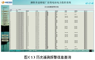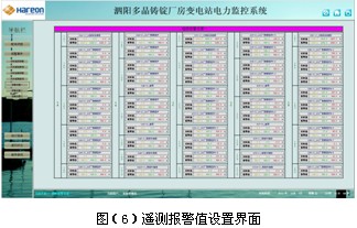 遙信和遙測報警功能,主要完成對低壓各出線回路的開關運行狀態(tài)和負載進線監(jiān)控,對開關變位和負載越限彈出報警界面指示具體的報警位置并聲音報警,提醒值班人員及時處理。遙測報警值設置界面可以看到每個監(jiān)控點的實時值和報警設置值,方便值班人員比對進線設置,負載越限值在相應權限下可自由設置。具備歷史查詢功能。見圖(4)至圖(6)。