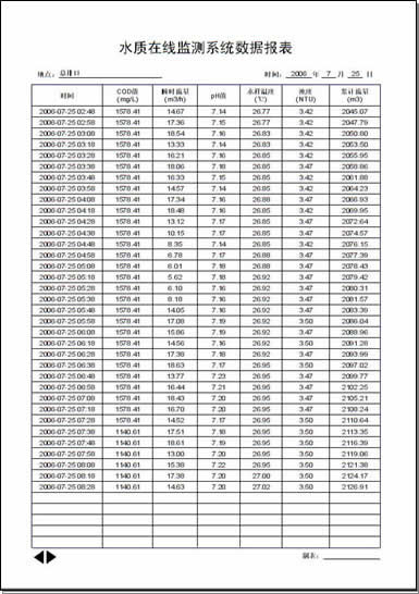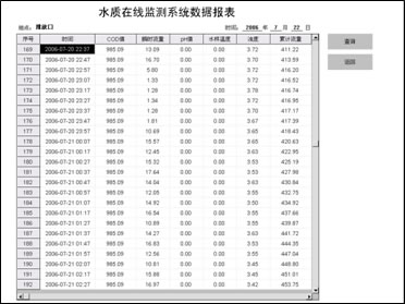 自動生成數據報表 為了真實反映當前的水質狀況,軟件以10分鐘為存盤周期對監測參數進行自動存儲。您可以通過查詢功能來查看、打印指定時段內的記錄。