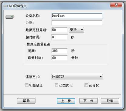 再建設備時,用專門為此開發(fā)的驅動,設備定義對話框處將不在出現(xiàn)設備地址的文本框,而連接方式也變成了網絡TCP。設備定義處的IP地址,填寫連接各設備的網關IP地址,端口號要設置成和配置軟件中設置的一致。至此完成了設備的組態(tài)。