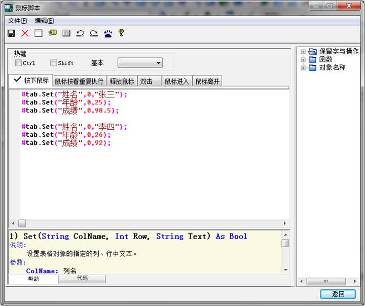 定義一個通用數據表是指在任意人機界面的腳本內以數據類型的形式定義一個臨時對象,這就像定義一個臨時變量一樣。定義方法如下: